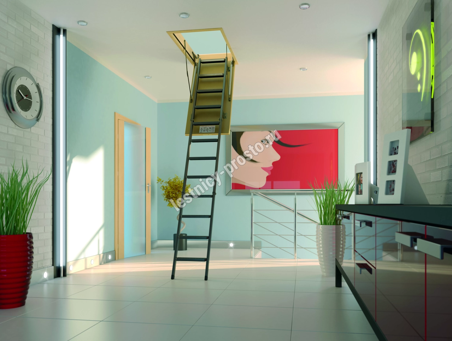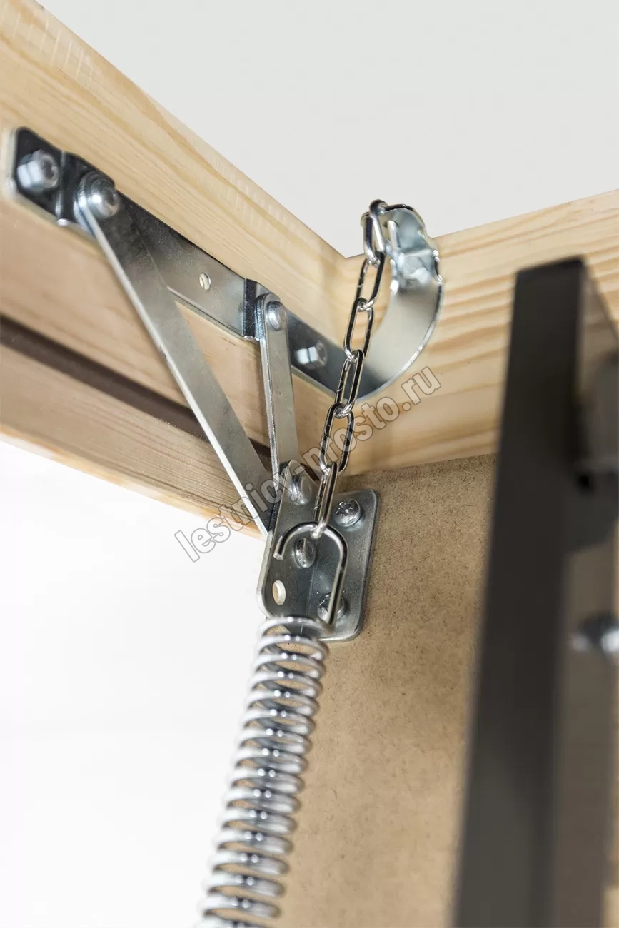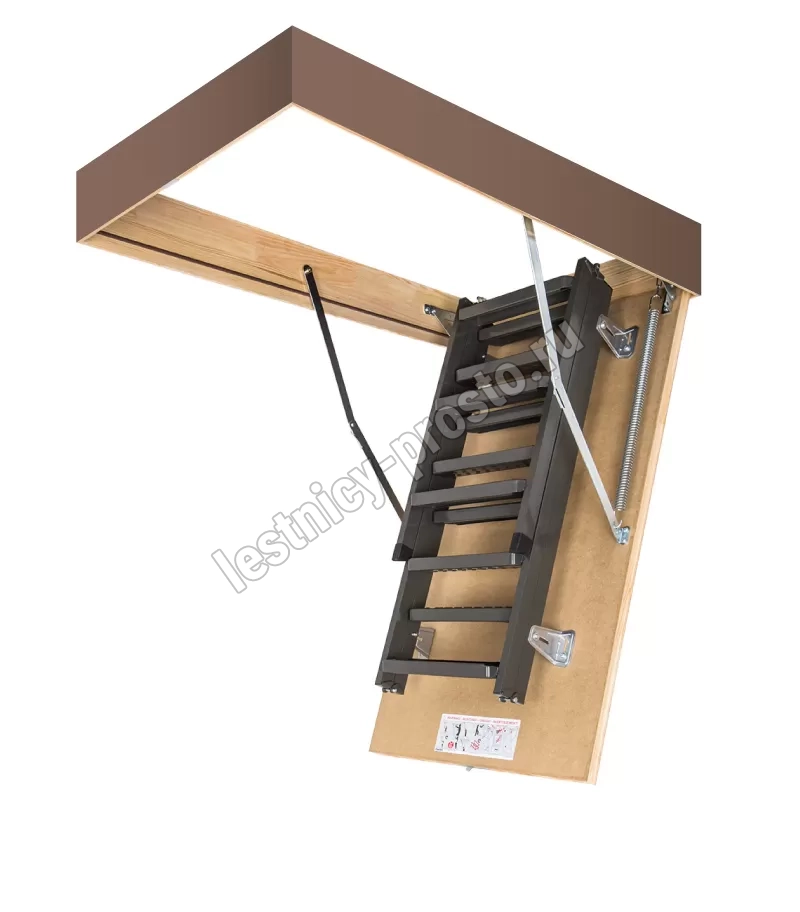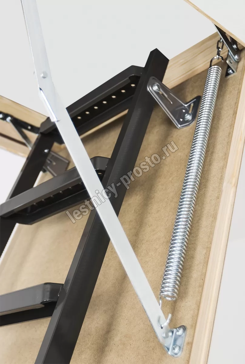 Установленные в лестнице угловые петли-шарниры нового образца придают ей высокую прочность и надежность, а также предохраняют короб от возможной деформации. Основное преимущество чердачной складной металлической лестницы LMS сводится к ее небольшим габаритам при сохранении высокой функциональности, прочности, надежности и эстетичности конструкции. Монтировать лестницу очень просто, для этого не придется затрачивать много времени и сил.