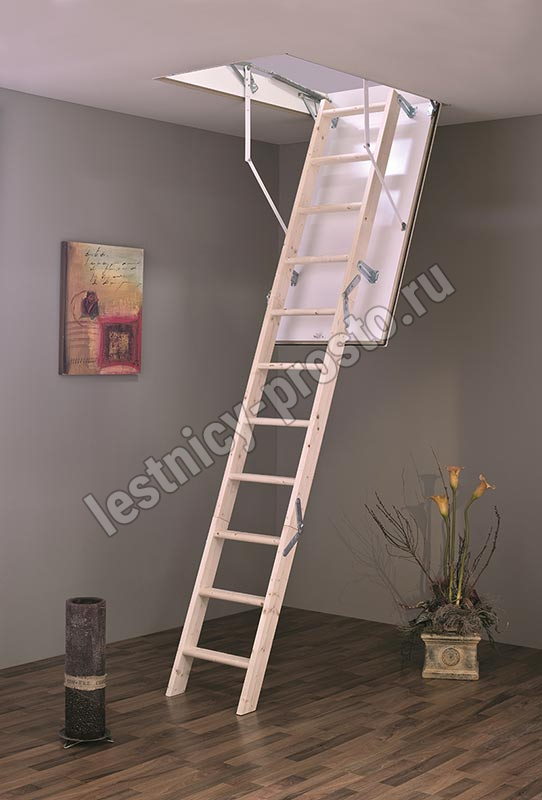 Раскладная трехсекционная чердачная лестница MC STEP изготовлена из массива сосны/ели;