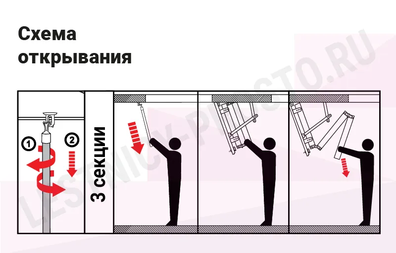 Лестница складная трехсекционная. Рабочая поверхность полностью выполнена из металла и покрашена порошковой краской. Термоизоляционная крышка типа "сэндвич", толщиной 30 мм, утеплена пенопластом, облицована с двух сторон ДCП белого цвета.