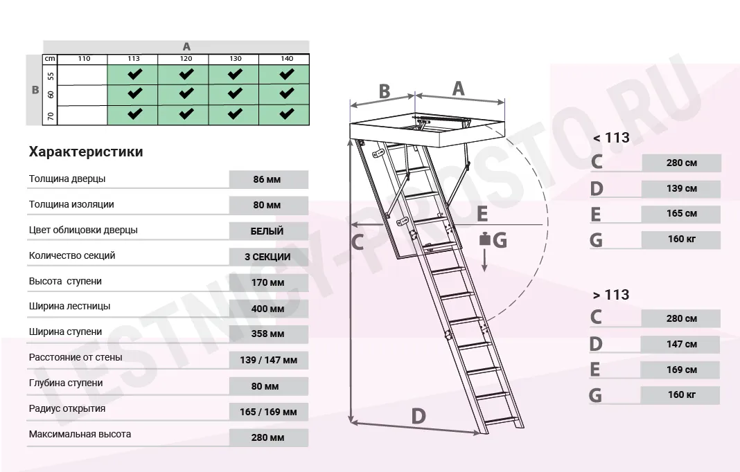 | Чердачная лестница OMAN POLAR 60×113 см, h-280 см |