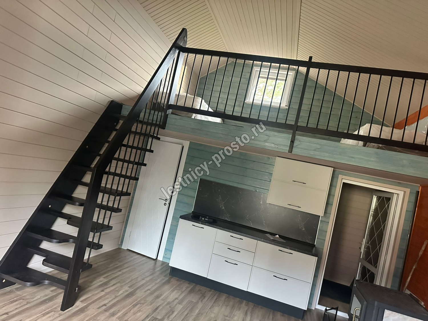 Лестница Prosto Studio 720 гусиный шаг имеет компактную конструкцию на подвесах