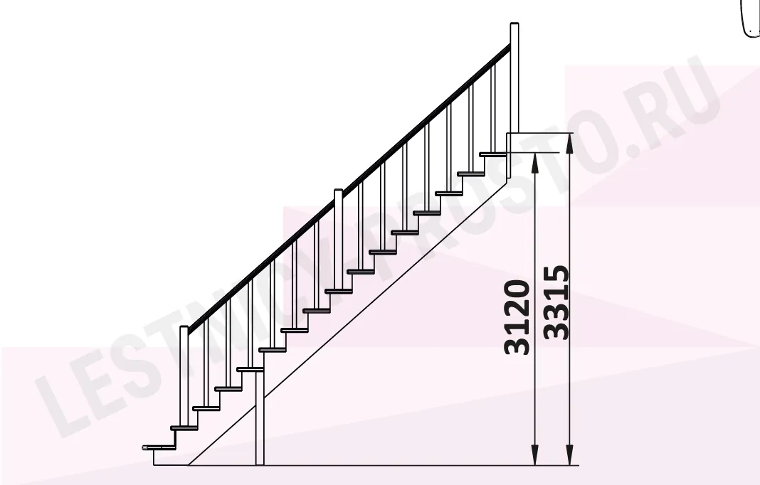 Высота лестницы 3120 - 3315 мм