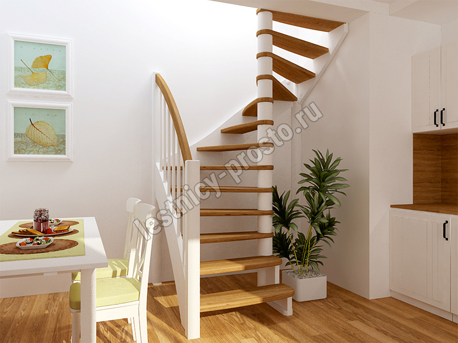 Ступени и поручень лестницы изготовлены из дуба, остальные элементы из сосны.