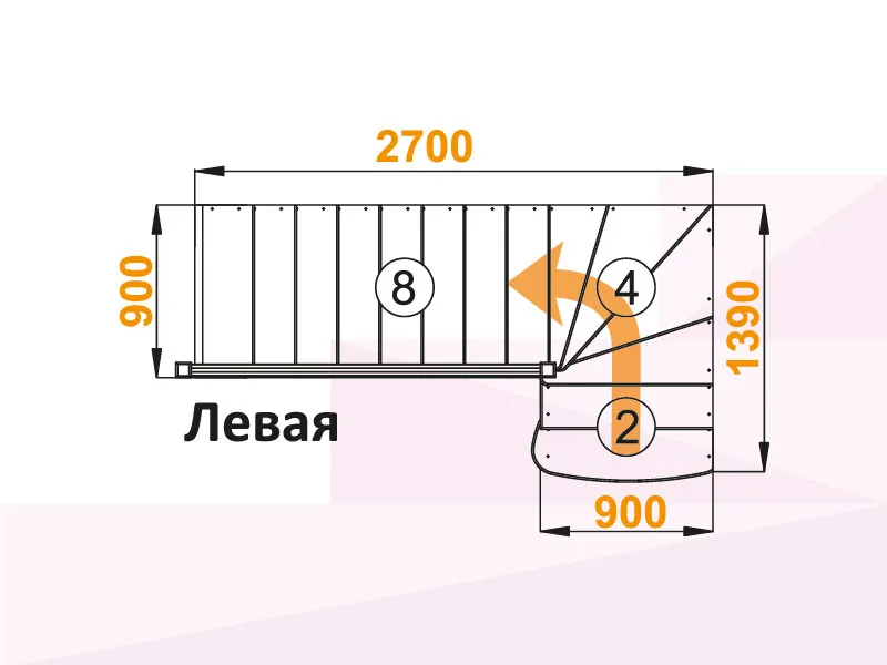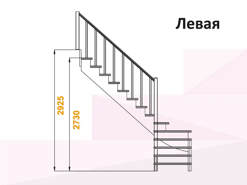 • Базовое ограждение (прямые столбы и балясины), сосна - по одной на ступень