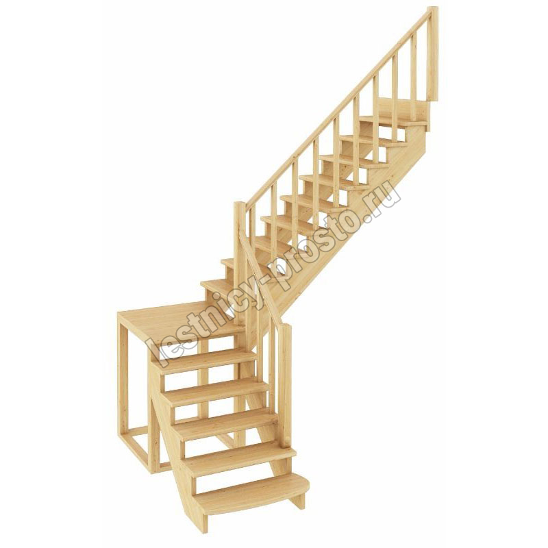 Базовый комплект включает в себя деревянные элементы лестницы и ограждения без какого-либо покрытия.