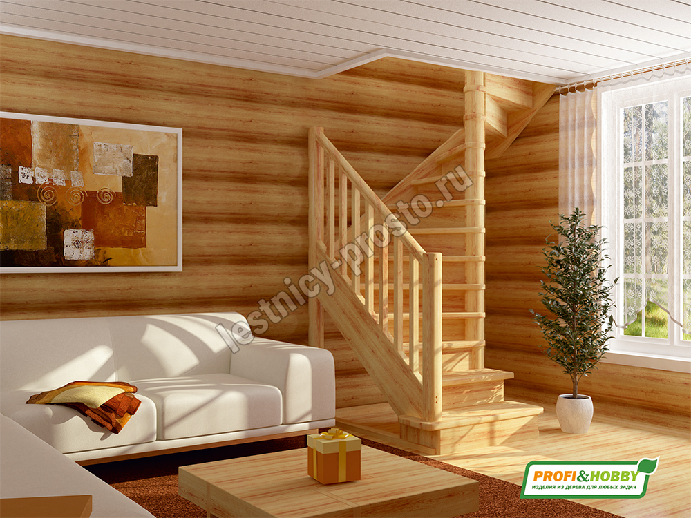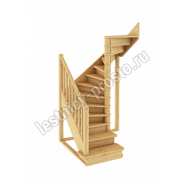 Базовый комплект включает в себя деревянные элементы лестницы и ограждения без какого-либо покрытия.