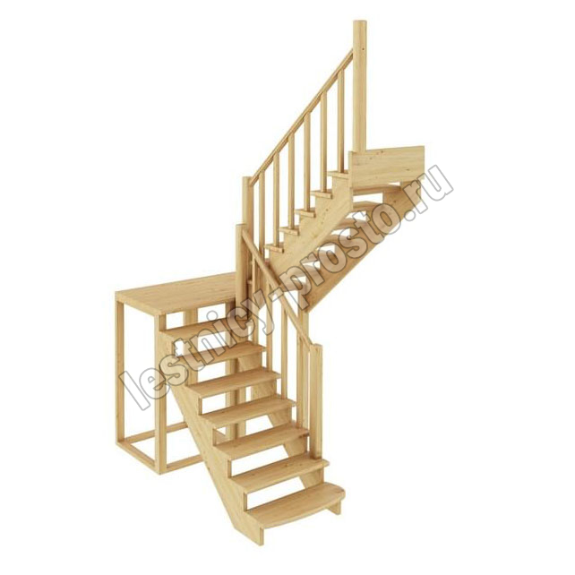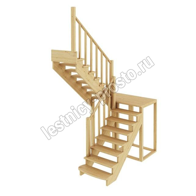 Ступени и поручень лестницы выполнены из ясеня, остальные элементы из сосны. Возможно изготовление данной модели полностью из ясеня.