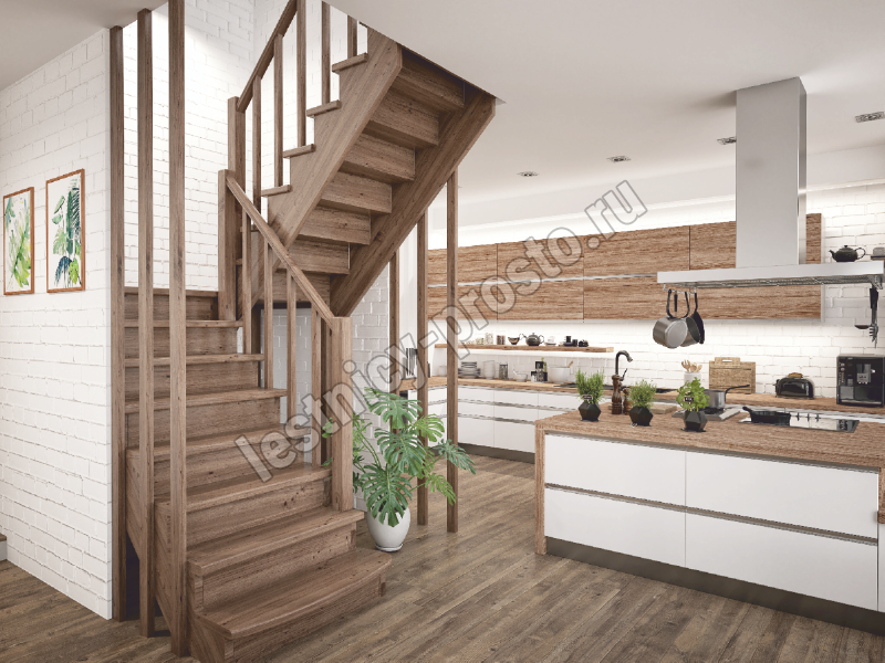 Лестница К-104М из сосны с подступёнками