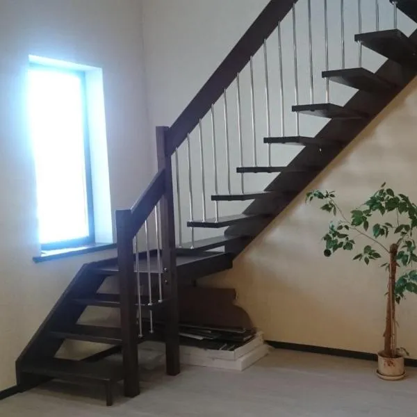 возможна комбинированная лестница: из сосны (ступени бук, ясень, дуб);