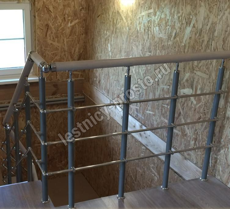 Комплект ограждений для П-образной лестницы PROSTO MONO из 10 ступеней.