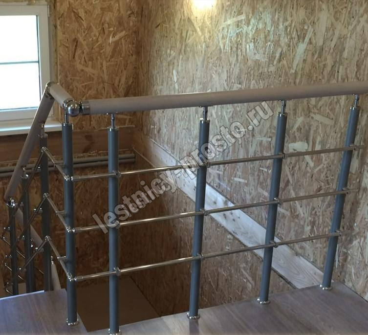 Ограждение для г-образной лестницы PROSTO DUE/DOUBLE с крашеными стойками и струнами