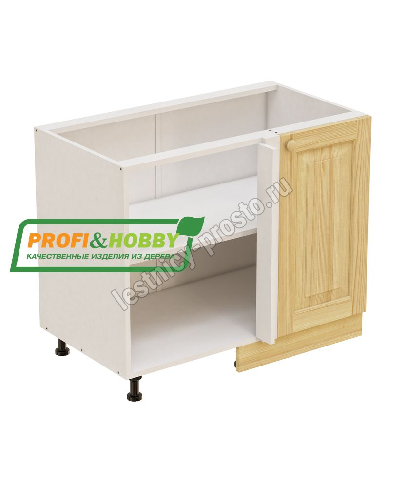 Тумба угловая 1010х530х720 + фасад сосна бесцветный акриловый лак