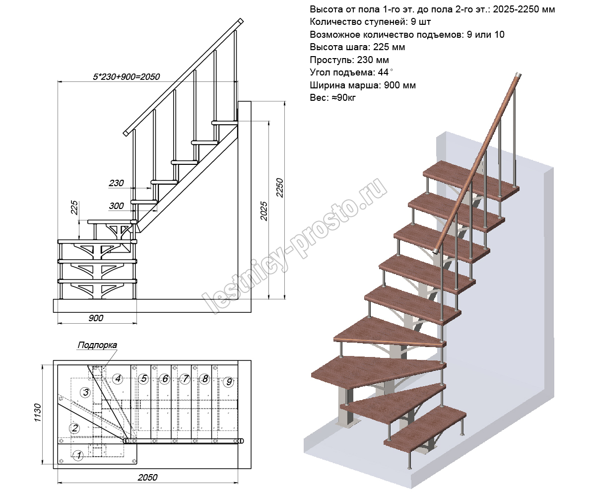 - таким образом вы получаете возможность увеличить общую высоту подъёма лестницы до необходимой.