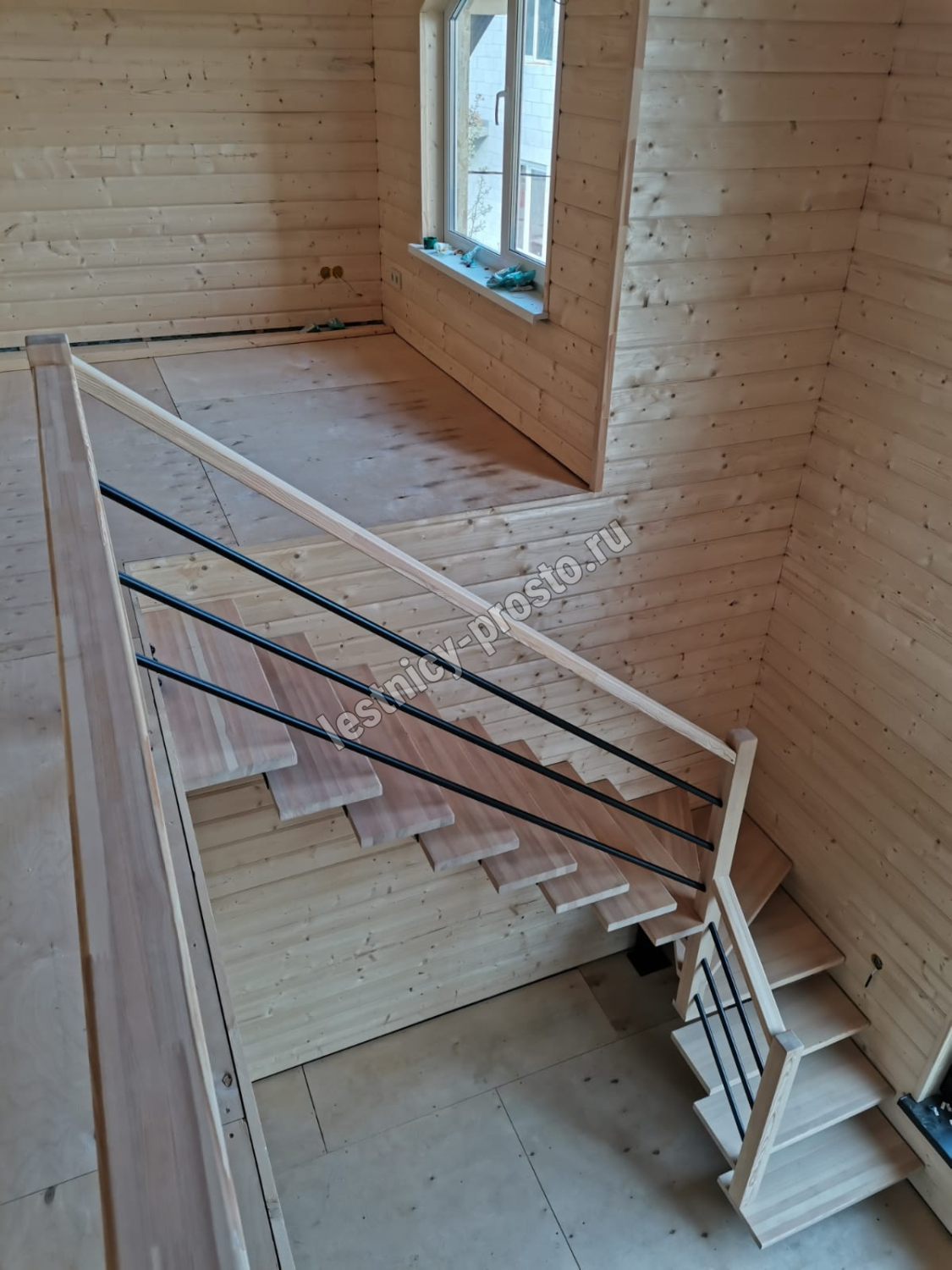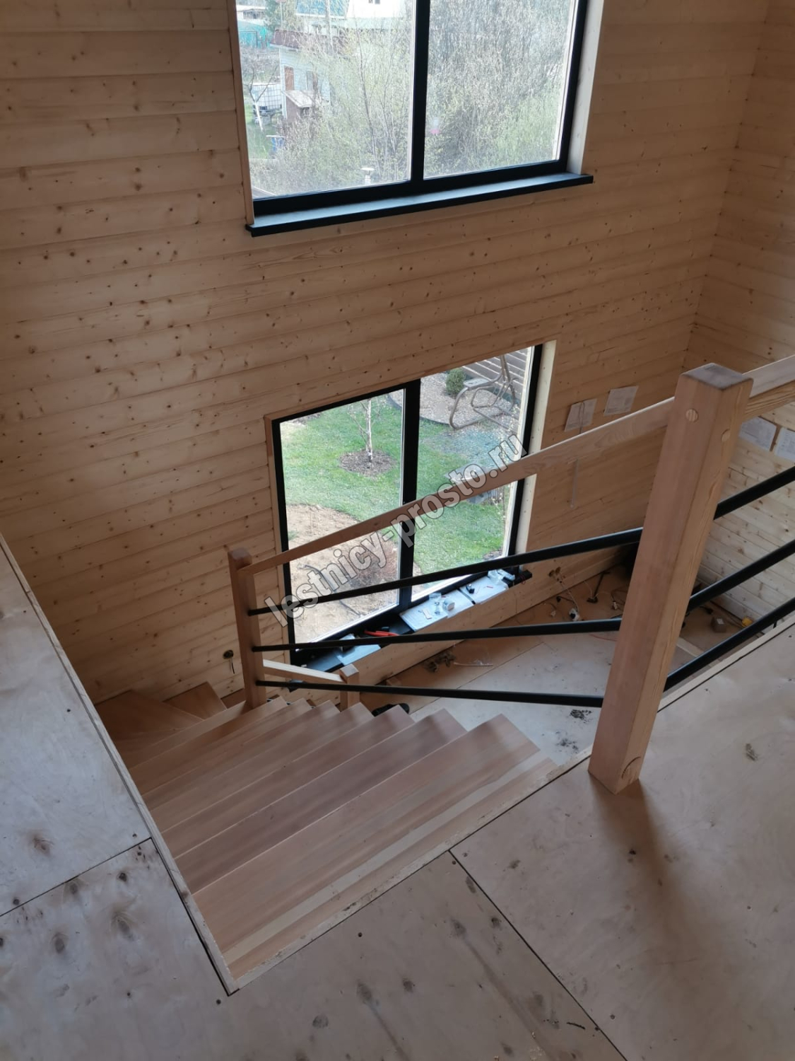 Лестница PROSTO MONO STEP TRINITY г-образная забежная, ступени лиственница