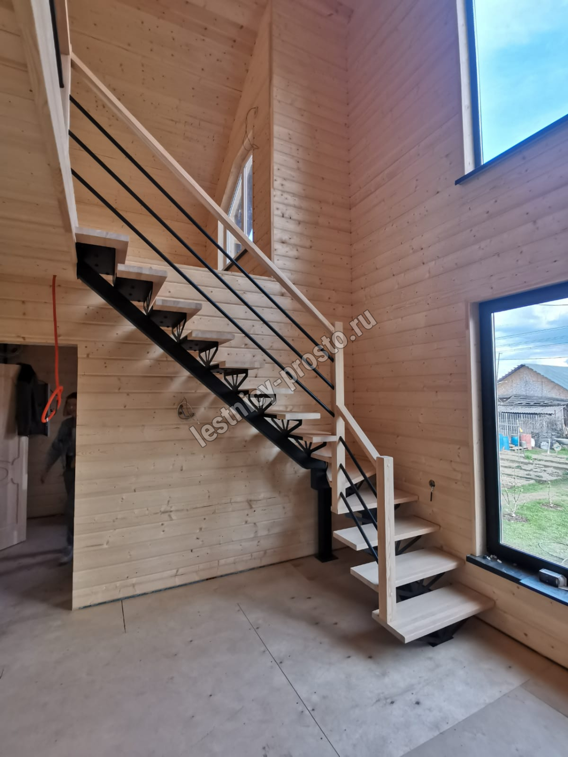 Конструкция представляет собой стальной монокосоур, на который крепятся ступени из выбранной породы дерева.