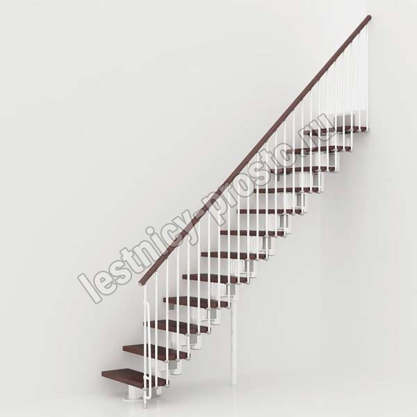 Лестница на стальном модульном каркасе. При монтаже этой лестницы, возможно регулировать высоту и глубину шага, таким образом можно получить лестницу под высоты этажа в диапазоне 2250 - 3030 мм.