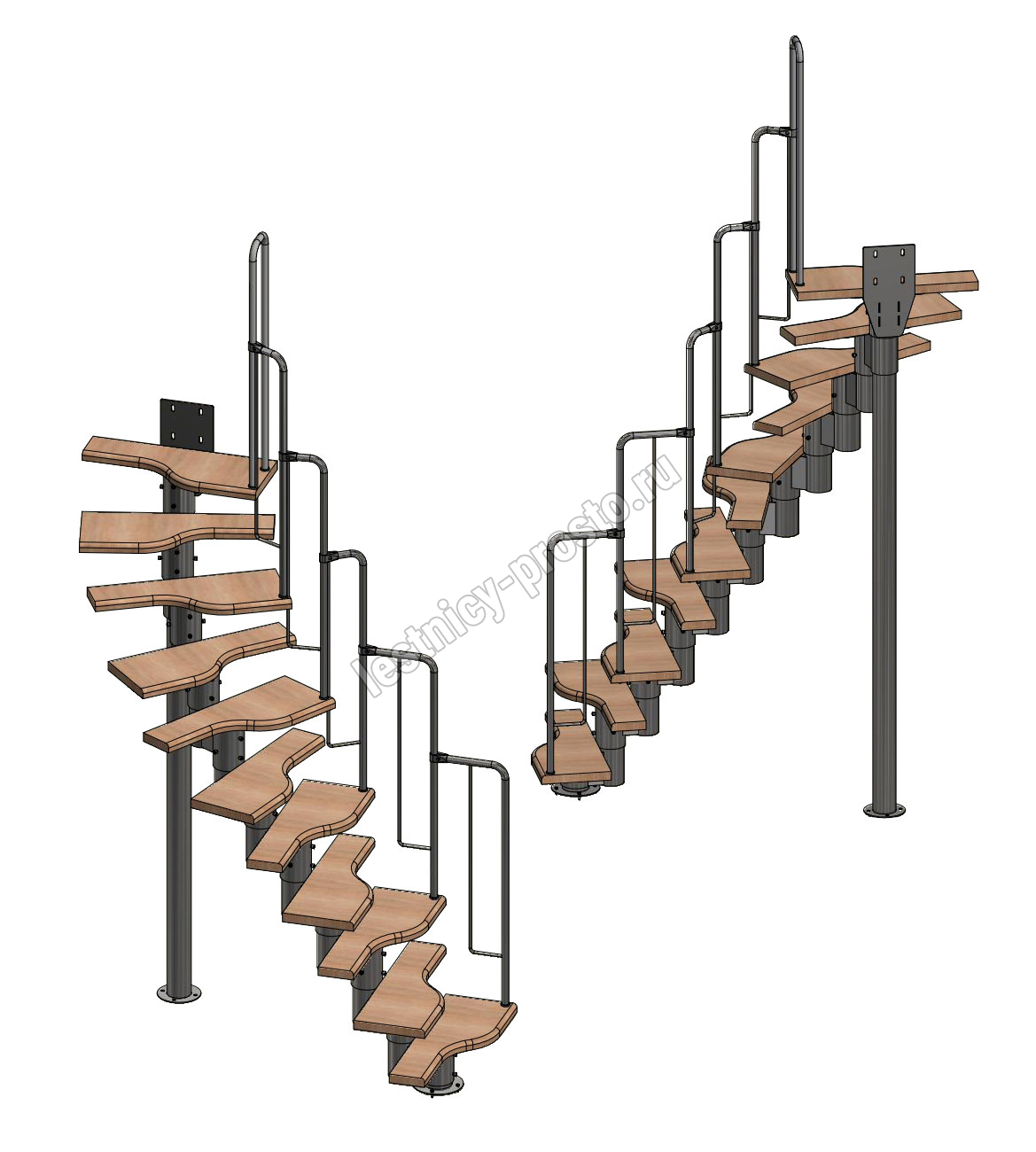 - Регулируемый по высоте в пределах 180-240 мм модуль. Большой диаметр и толщина металла деталей обеспечивают жесткость и прочность конструкции. Регулировка каждого модуля по высоте позволяет легко приспособить лестницу под ваше помещение.
