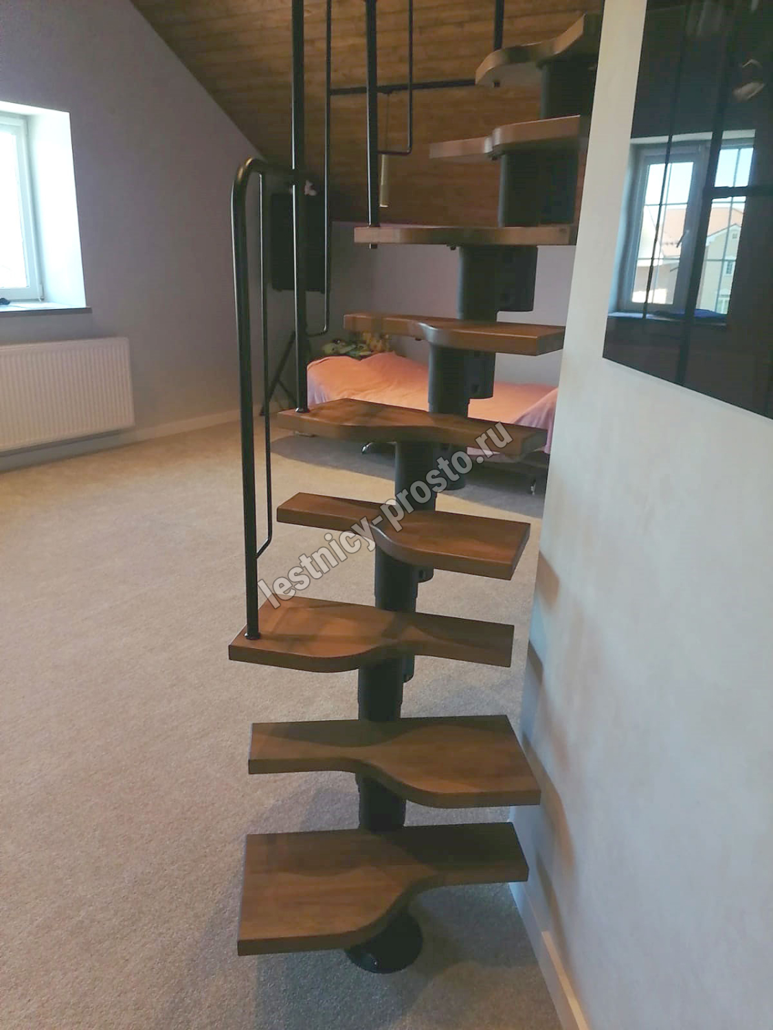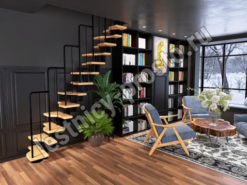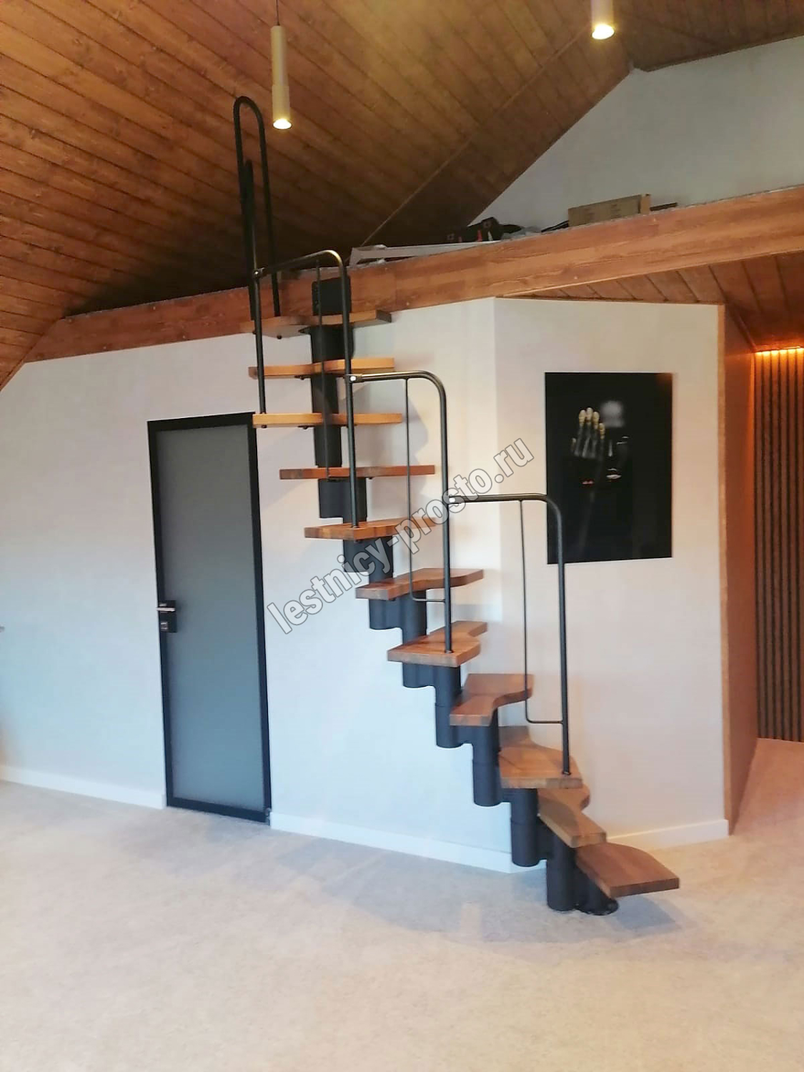 Лестница Prosto Urban Black гусиный шаг 700 мм, h234-336 см (13 ступеней), ясень