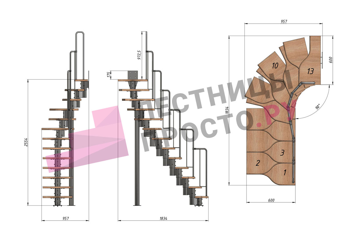 Высота лестницы 2340 - 3360 (13 ступеней) мм
