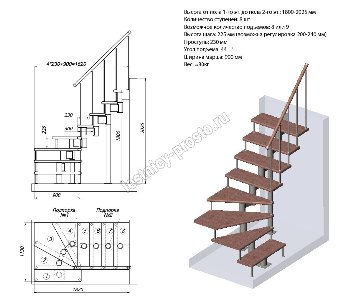 Стоимость указана для комплекта из модульного каркаса и деревянных ступеней без покрытия (ограждение можно выбрать отдельно)