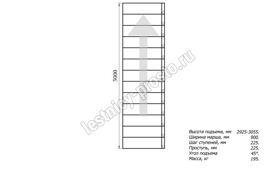 Модульная лестница Стандарт 2925-3055, Белый, Лиственница, Нержавеющая сталь