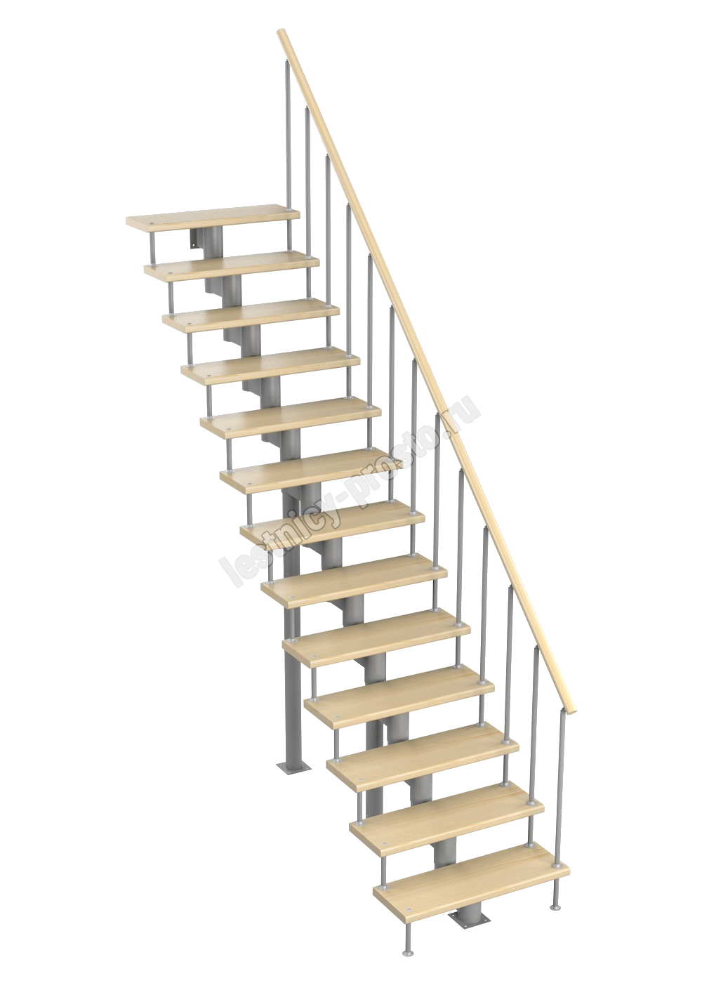 Модульная лестница Стандарт 2925-3055, Белый, Сосна, Нержавеющая сталь