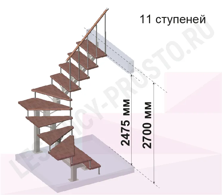| Лестница PROSTO MONO П-образная, h270 см, ступени хвоя |