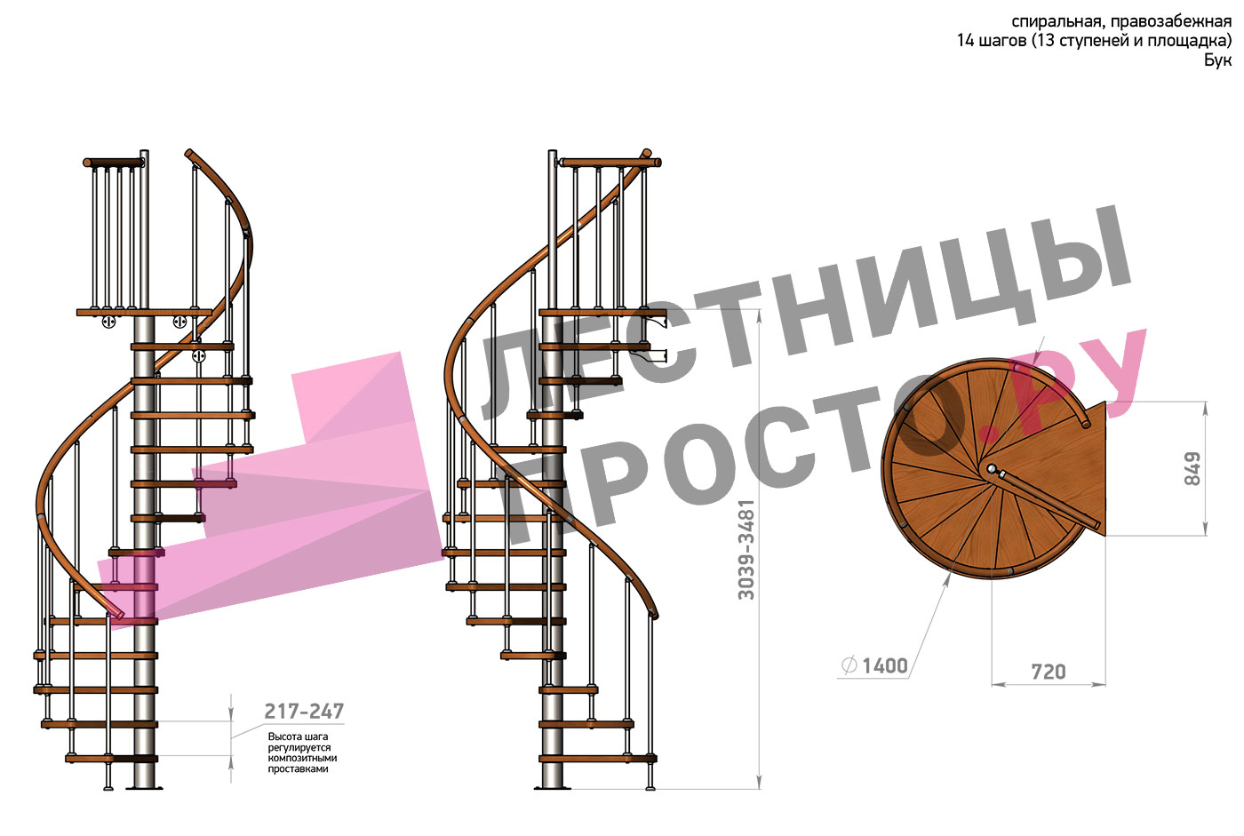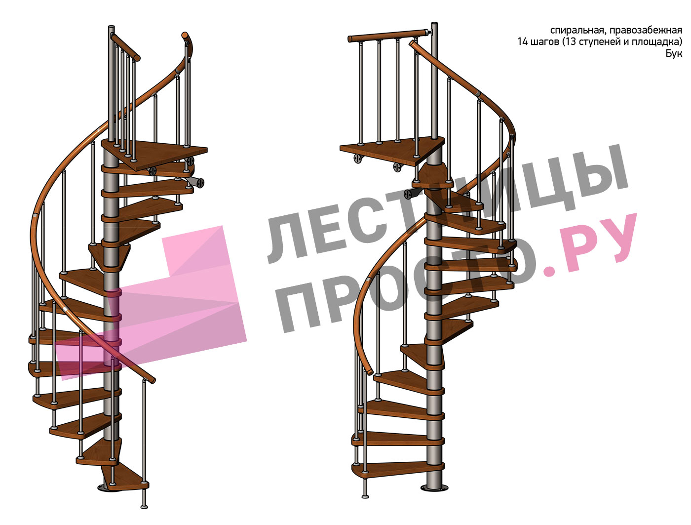 Винтовая лестница Prosto Spiral White D140см, h303.9-348,1 см, бук