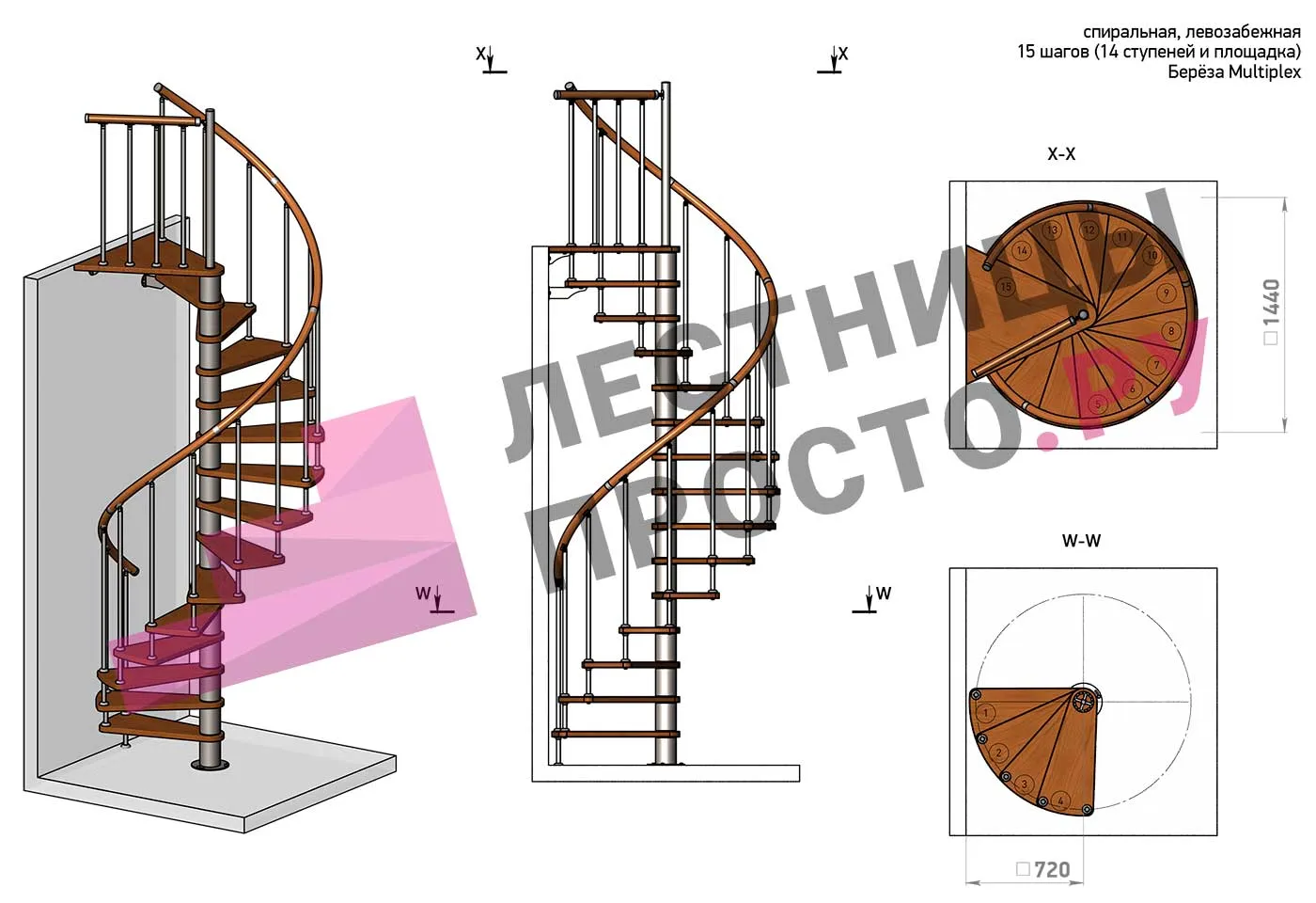 Высота лестницы 3182 - 3623 (14 ступеней) мм
