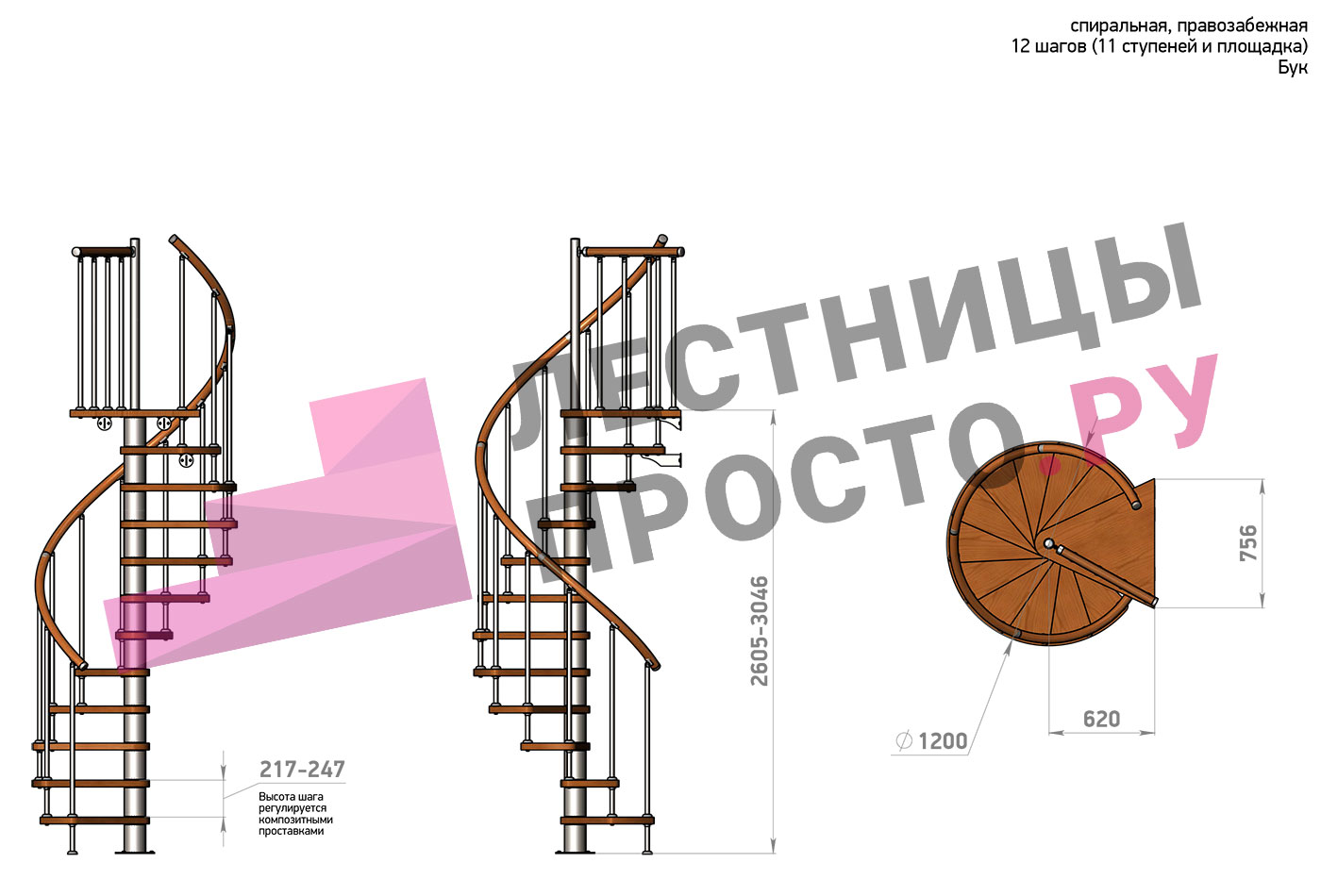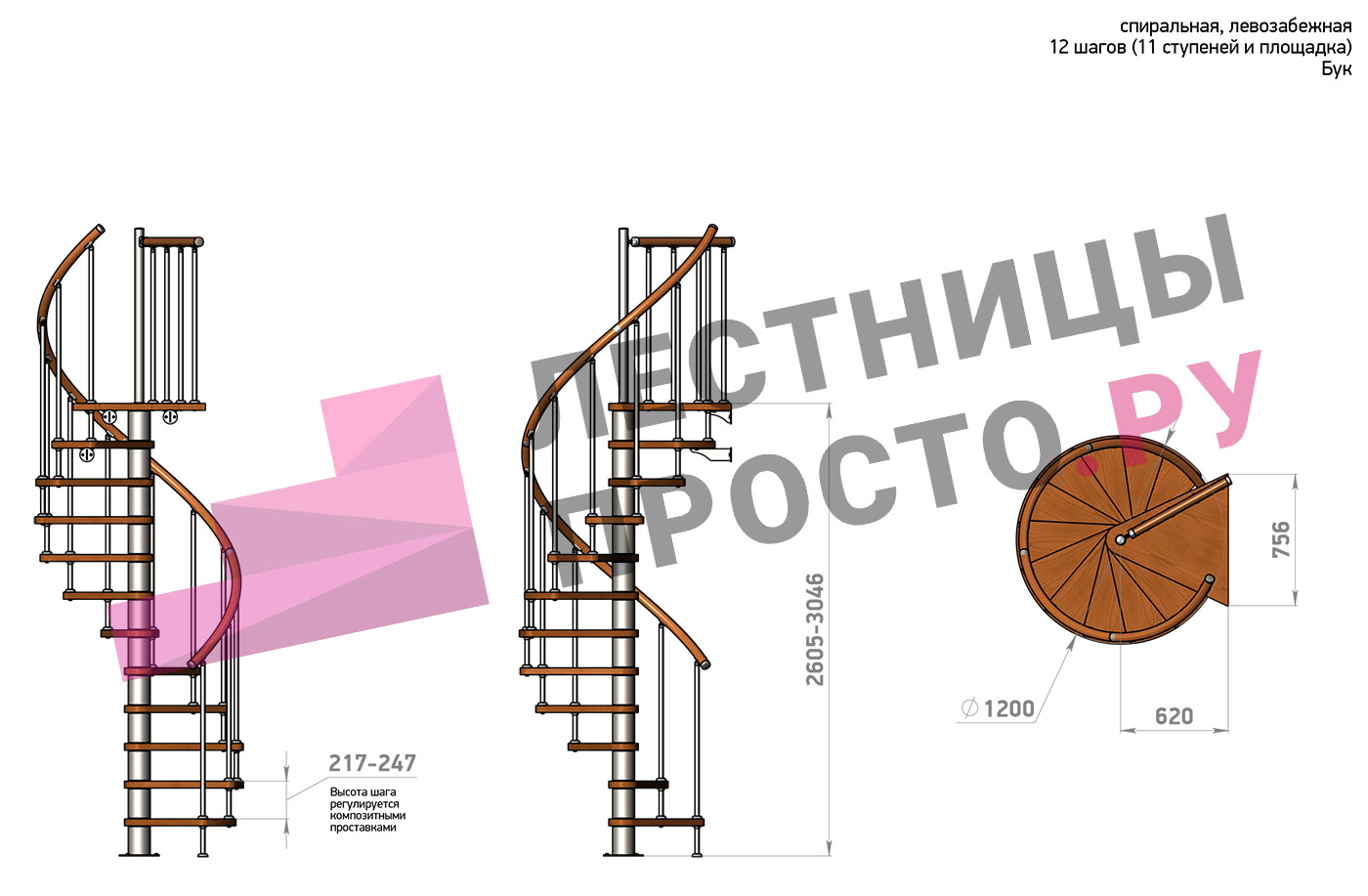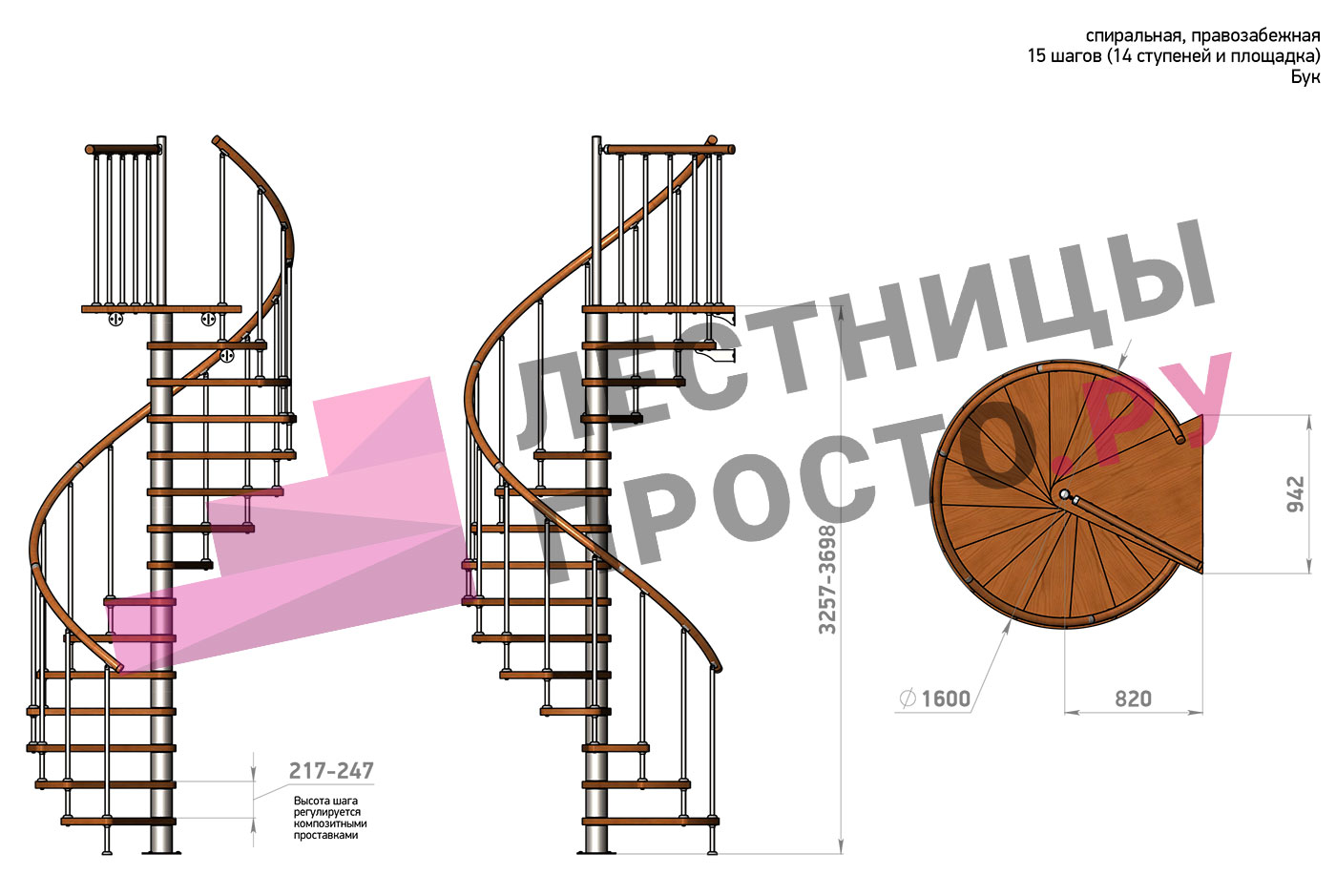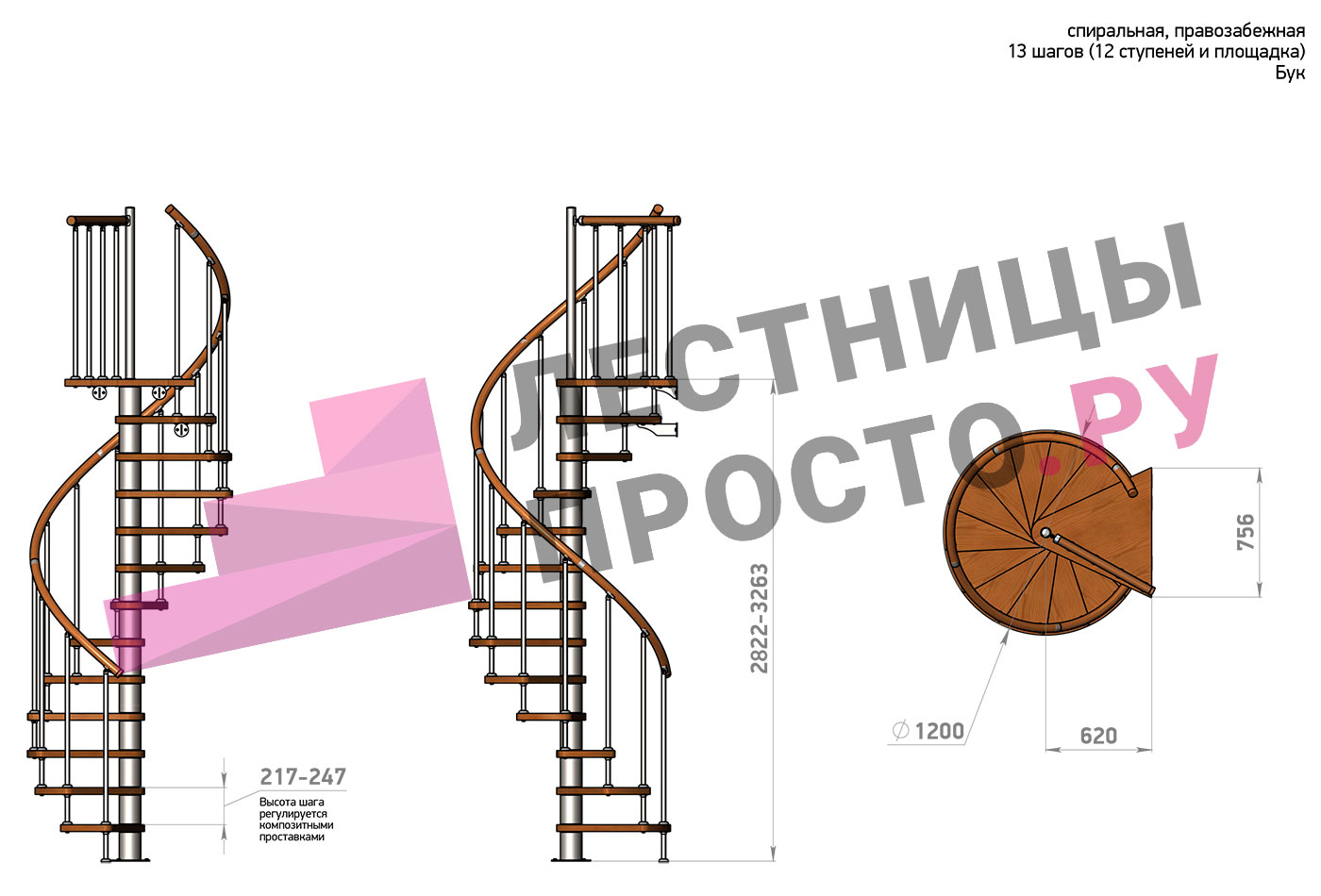 Высота ступеней регулируется с шагом 3 мм. в пределах 217-247 мм., благодаря чему, лестница прекрасно подгоняется под необходимую высоту.