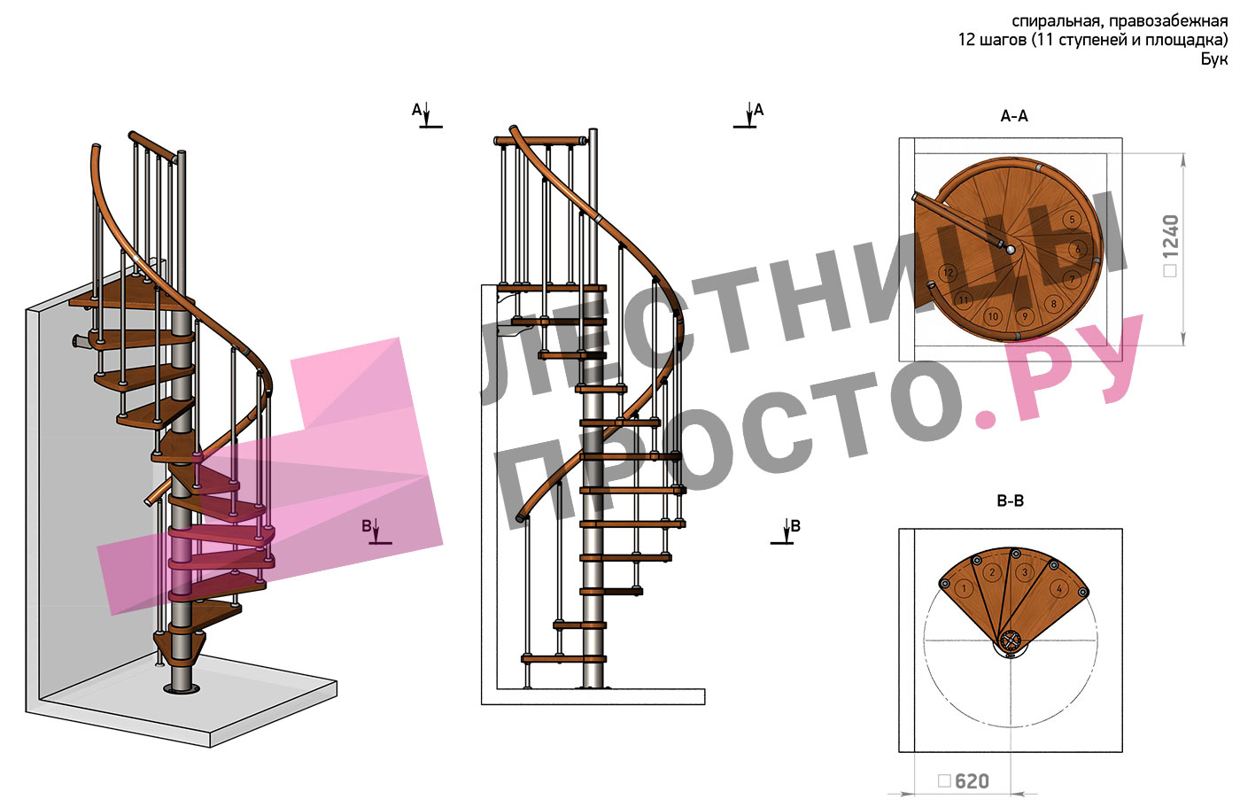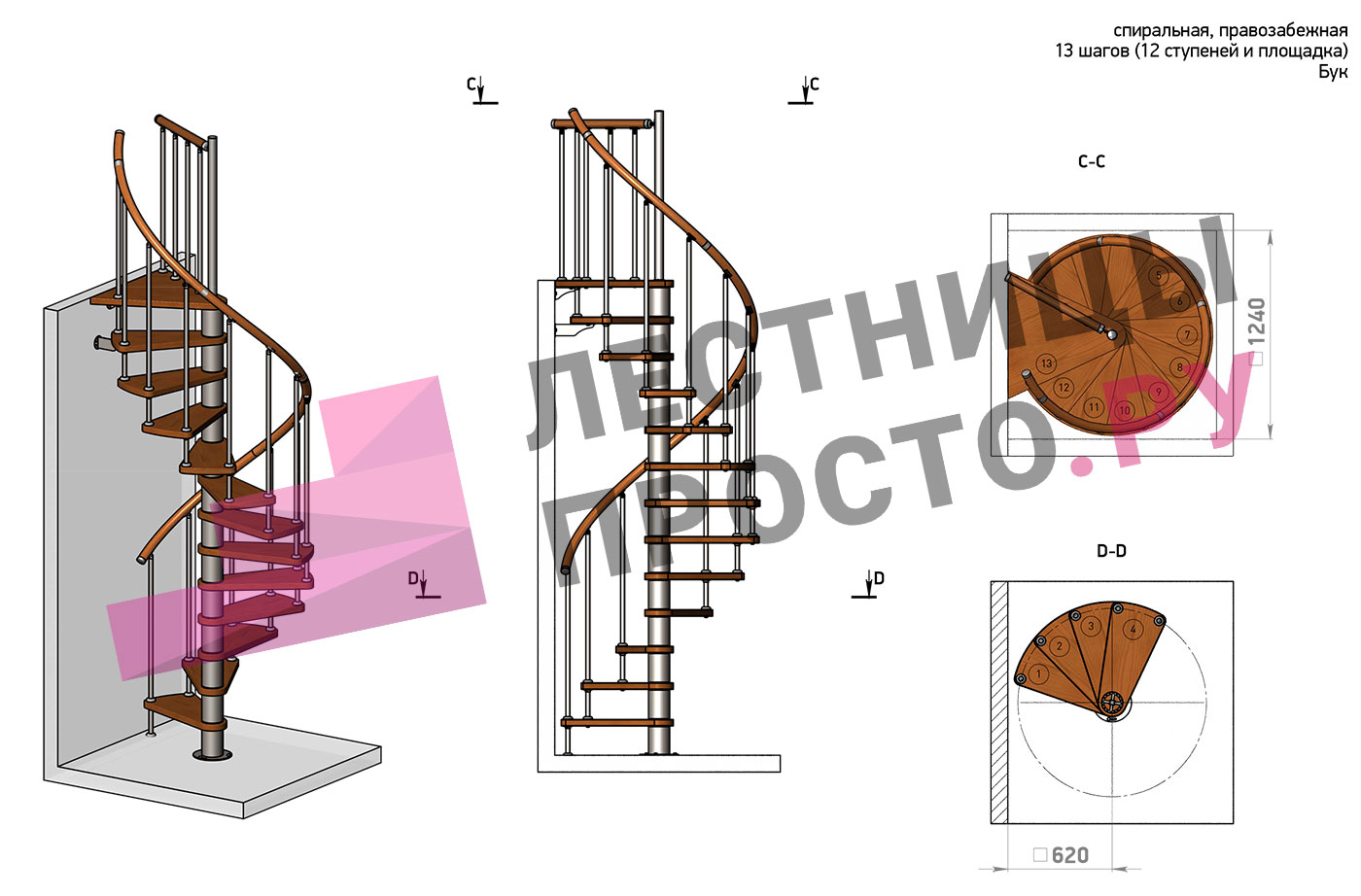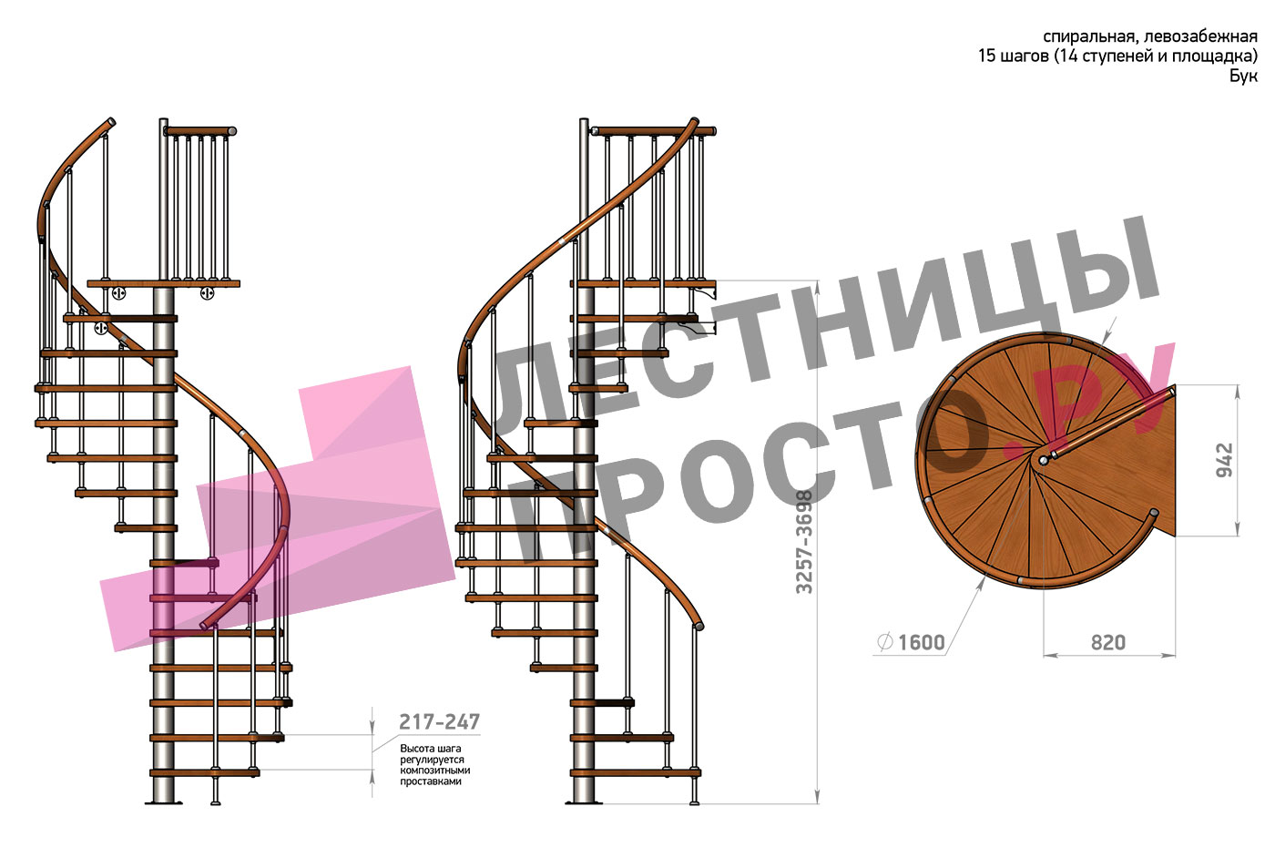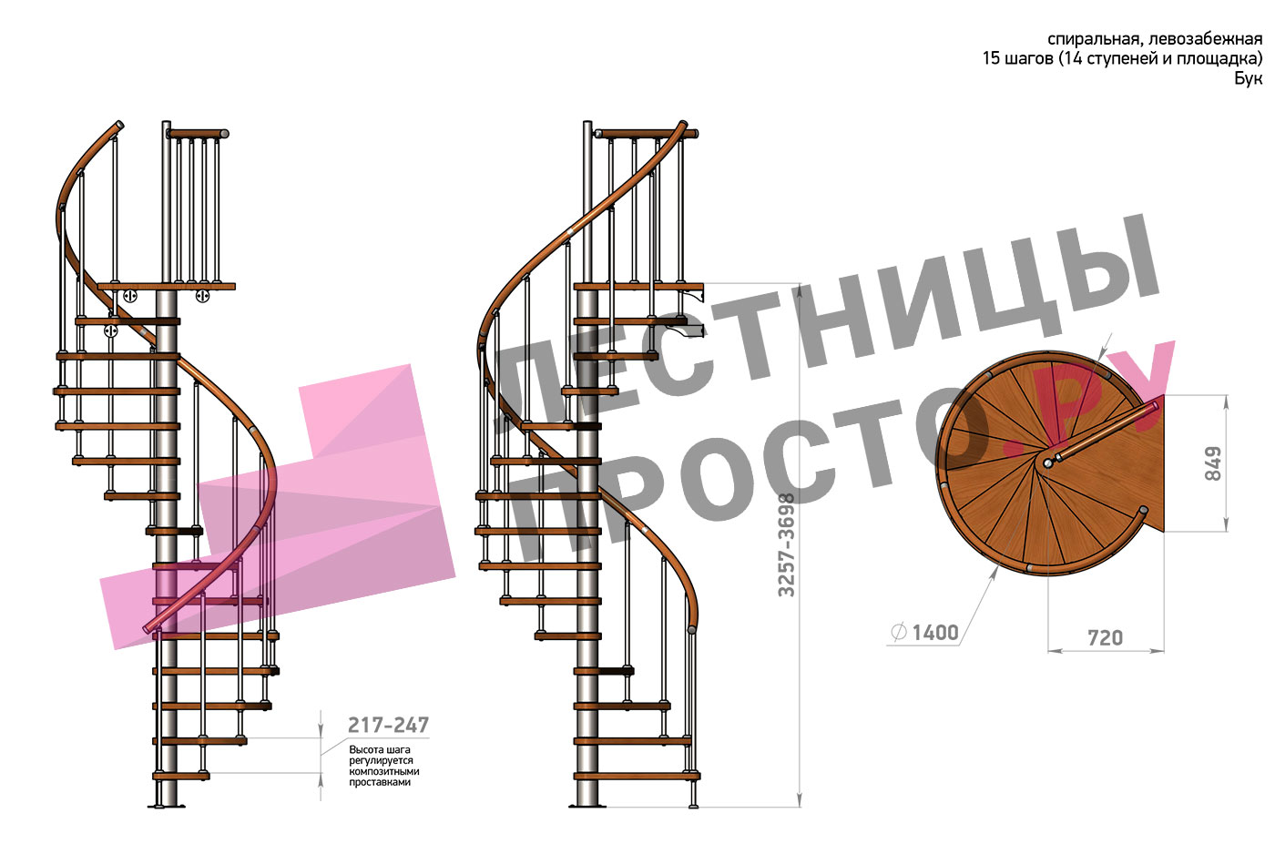 Высота ступеней регулируется с шагом 3 мм. в пределах 217-247 мм., благодаря чему, лестница прекрасно подгоняется под необходимую высоту.