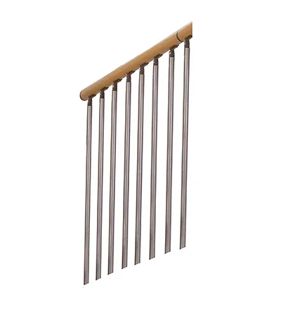 Ступени лестницы изготовлены из бука по технологии MULTIPLEX и покрыты износостойким защитным лаком. Лестница монтируется как по часовой стрелке, так и против. Возможен монтаж в круглый или квадратный проём. Ограждение: стальные трубки, Ø25 мм RAL 9006. Поручень: гибкий цельный ПВХ-поручень Ø40 мм серого цвета. Конструкция и балюстрада окрашены порошковым способом в серый цвет (RAL 9006).