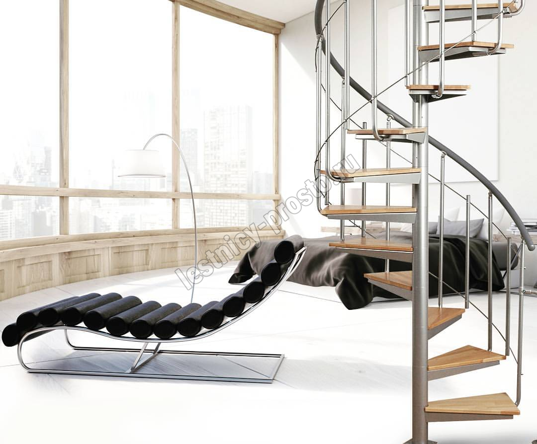 | Винтовая лестница Solo vertical серебро, дуб |