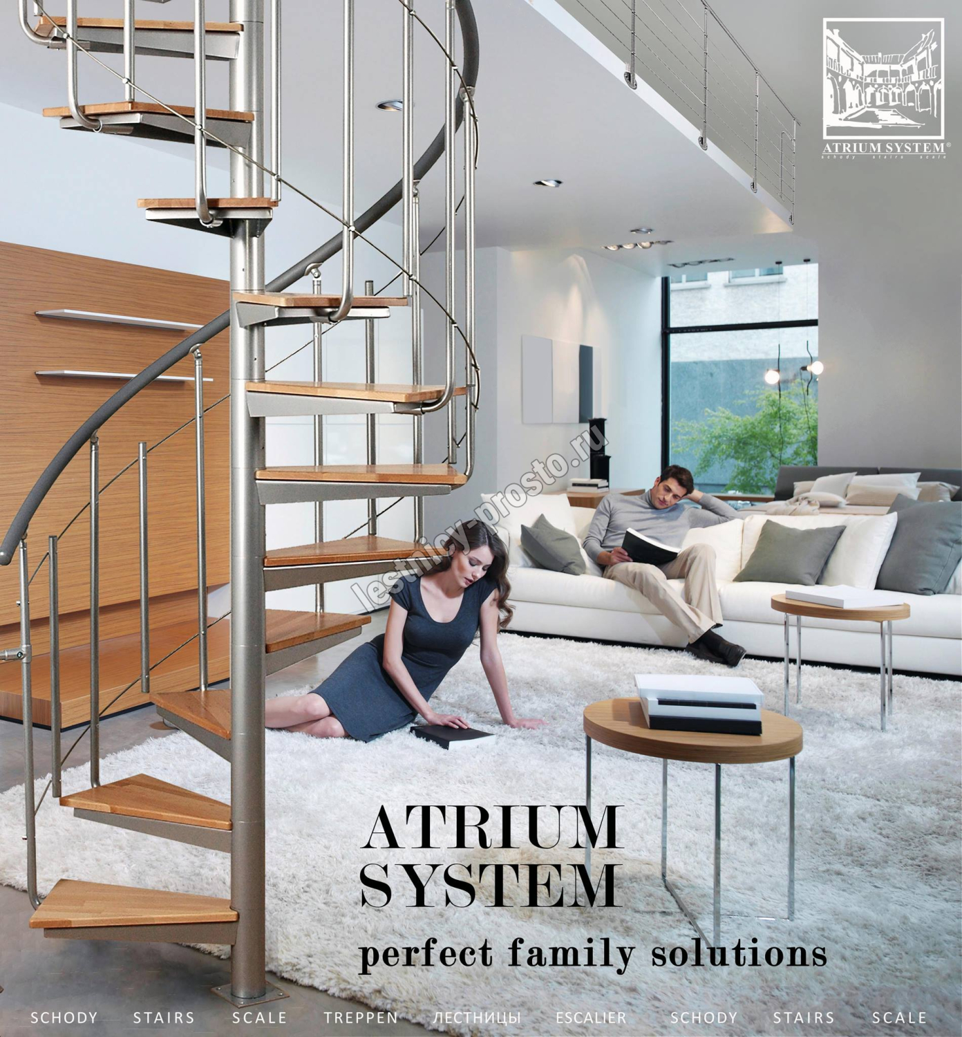 ATRIUM SOLO VERTICAL - это современная винтовая лестница, не требующая много места. Промышленный характер лестницы подчеркивают стальные тросы, используемые в балюстраде.