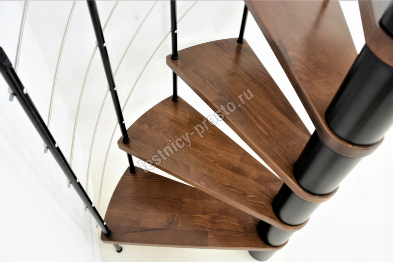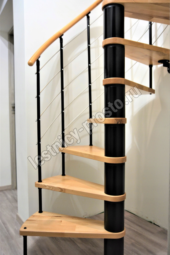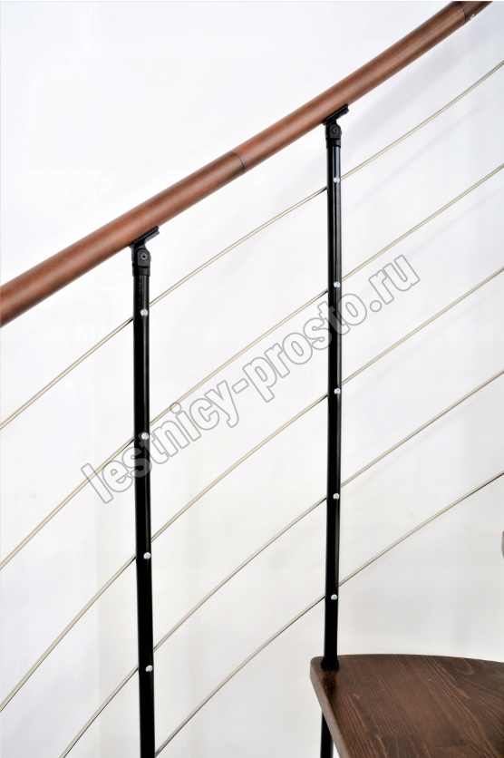 Деревянные ступени и поручни  изготовлены из массива дерева и покрыты специальным лаком от компании Минка, который предотвращает царапины, сколы или стирание поверхности при интенсивном использовании лестницы.