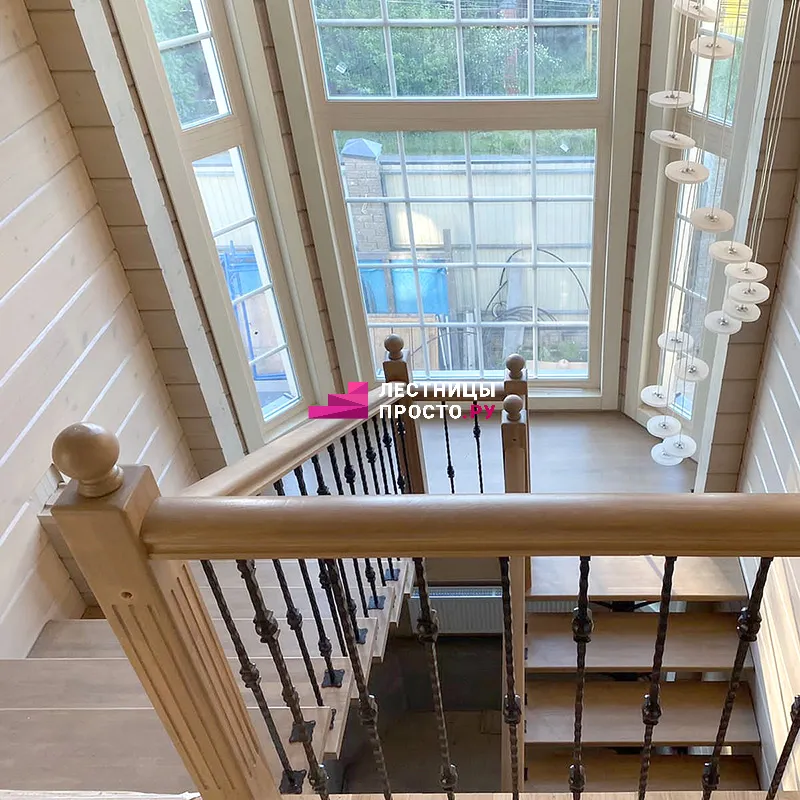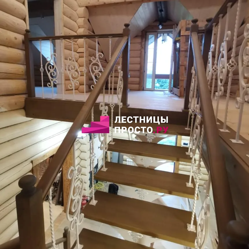 Лестница на центральном каркасе с коваными балясинами ЛП 703